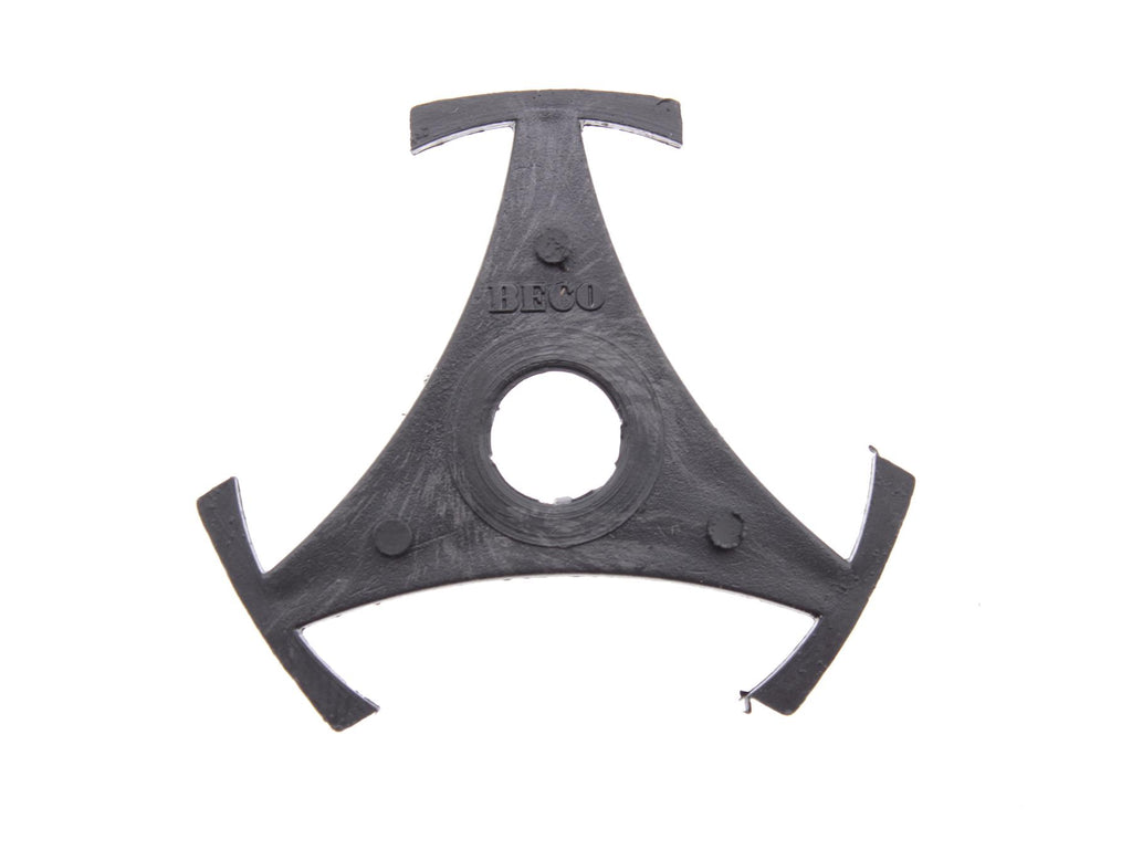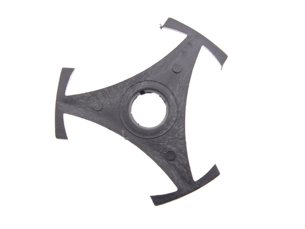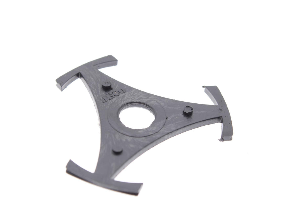 This plastic 45 RPM single adapter is designed for playing 7-inch vinyl records with a large centre hole on turntables without a fixed centre adapter. The classic star-shaped insert clips securely into the centre hole of the record, ensuring correct centring and stable playback.
