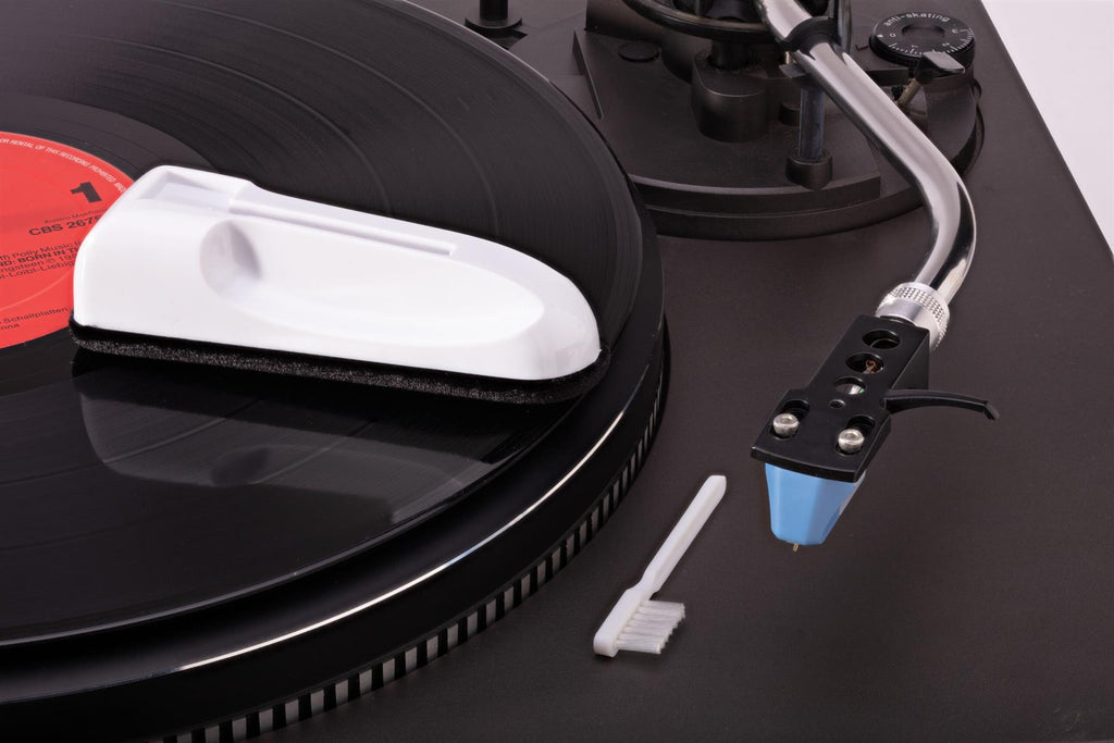 Integrated into the handle is a removable stylus cleaning brush, allowing convenient cleaning of the diamond tip as part of the same maintenance routine. A protective plastic cover is included to keep the velvet surface clean and protected when the brush is not in use.