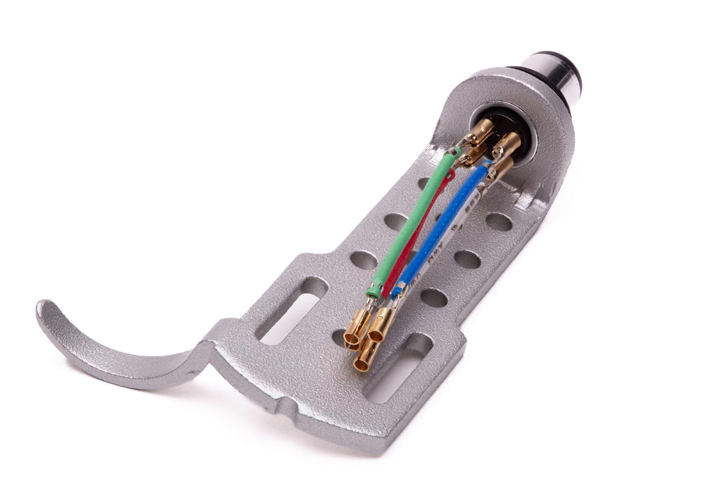 A practical notch at the front of the headshell helps guide the stylus safely onto the record surface, improving control during cueing. High-quality, colour-coded connection leads with gold-plated contacts ensure clean, low-loss signal transmission. A rubber washer is included to secure a firm and vibration-resistant connection between the headshell and the tonearm.
