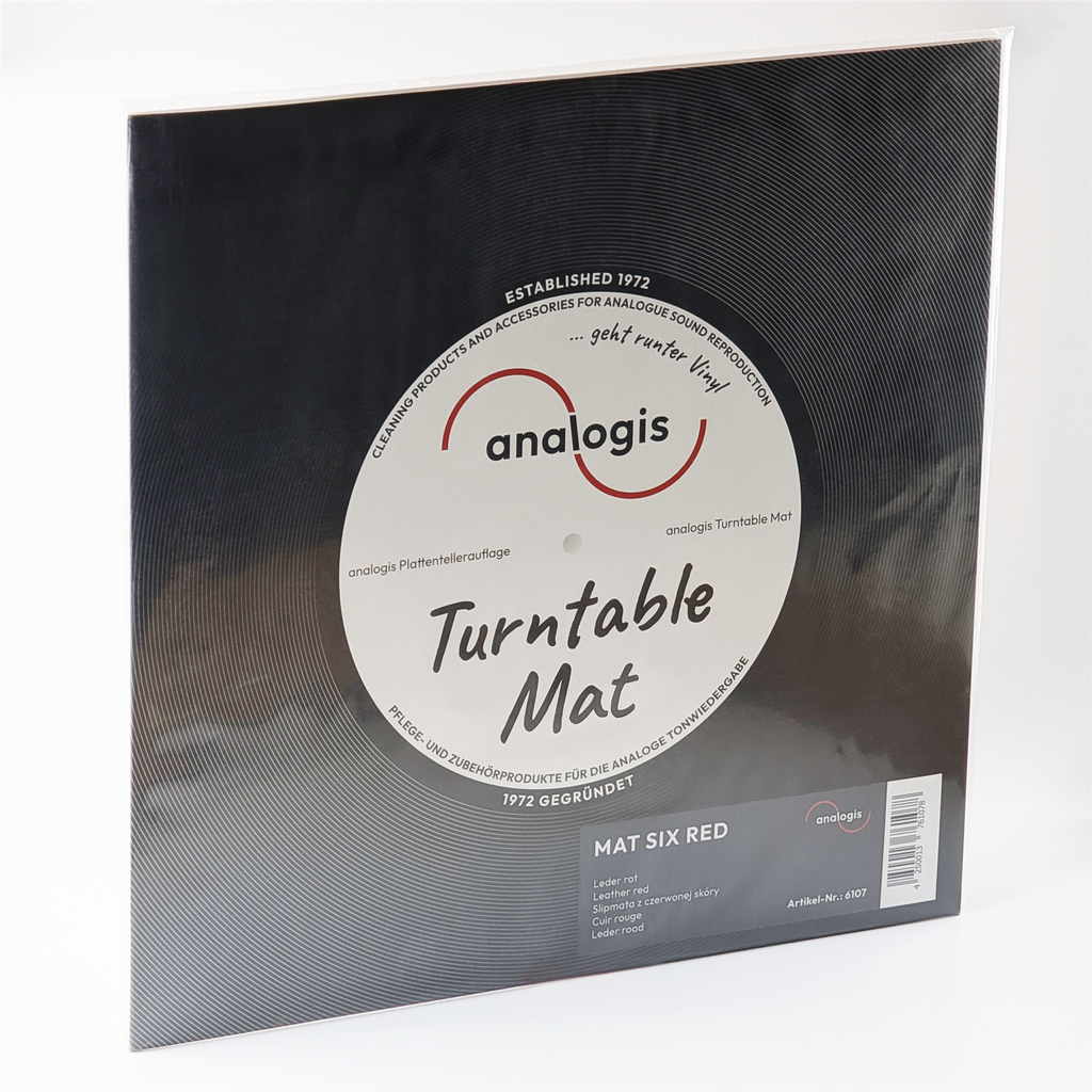 Turntable mats offer a wide range of possibilities to fine-tune sound reproduction while enhancing the visual appearance of a record player. The Analogis Mat Six Red is designed for listeners who want excellent damping performance combined with a distinctive, high-quality look.