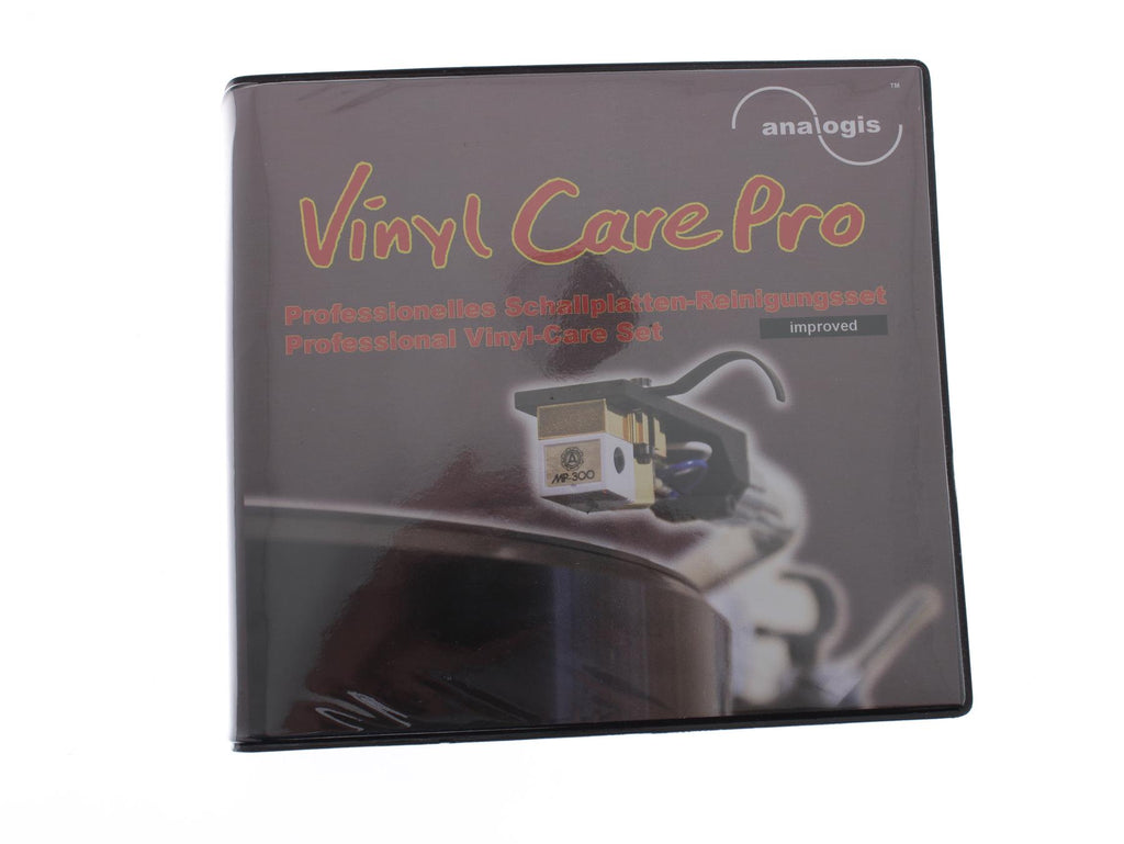 The Analogis Vinyl Care Pro Improved is a complete record cleaning set designed for effective vinyl and stylus maintenance. It provides all essential tools needed to remove dust, groove contamination, and stylus debris, supporting consistent playback quality and long-term record preservation.