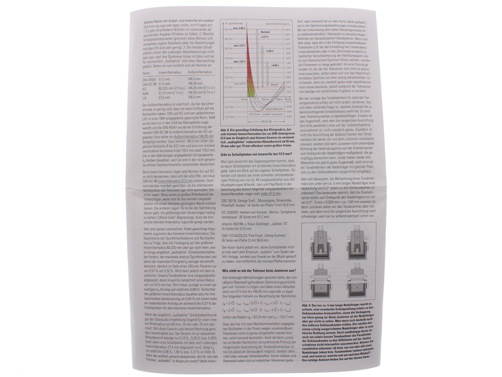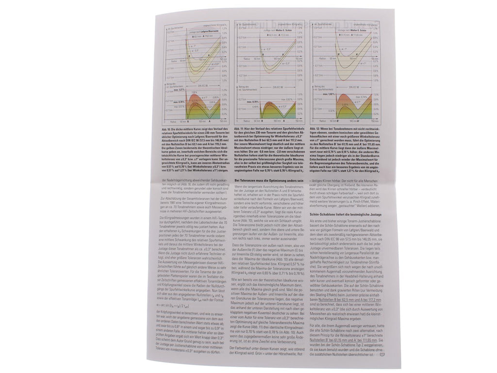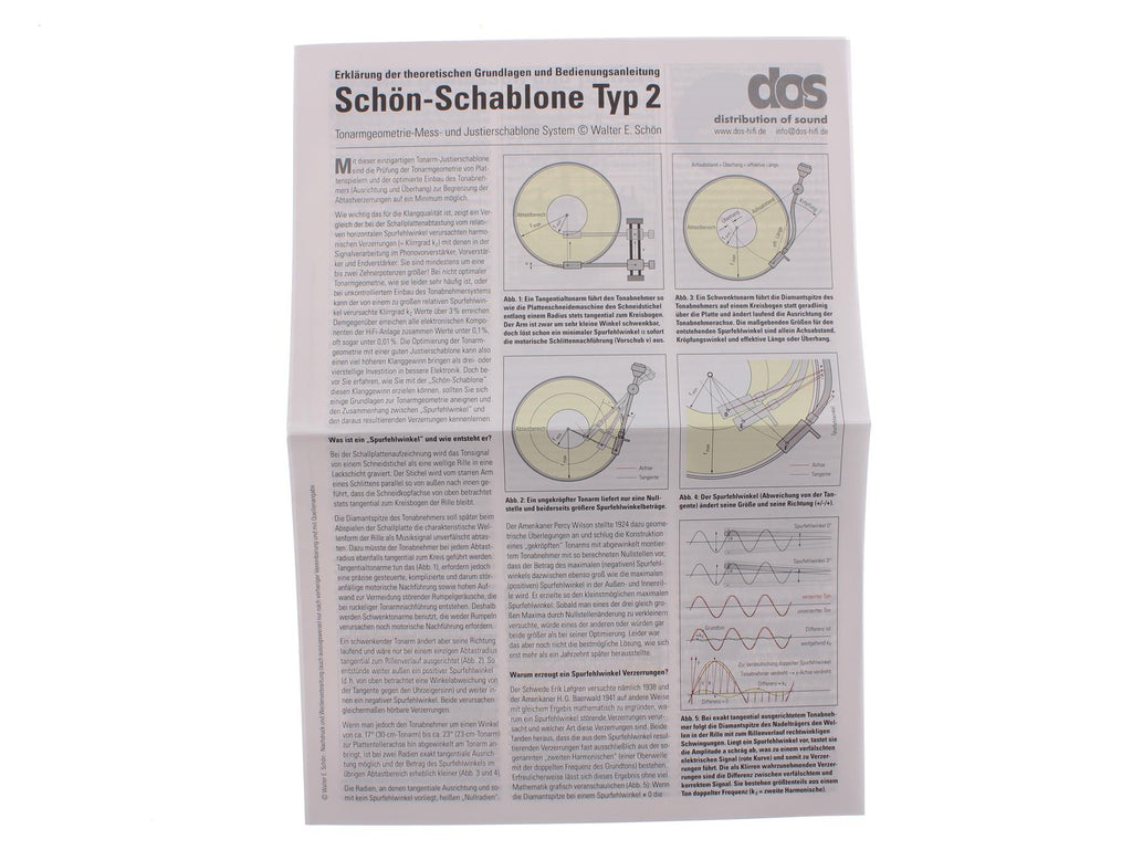This gauge allows precise adjustment of cartridge position and tonearm geometry, helping achieve correct overhang and alignment according to established setup principles. It is suitable for use during initial turntable setup, cartridge replacement, or fine-tuning of existing installations.